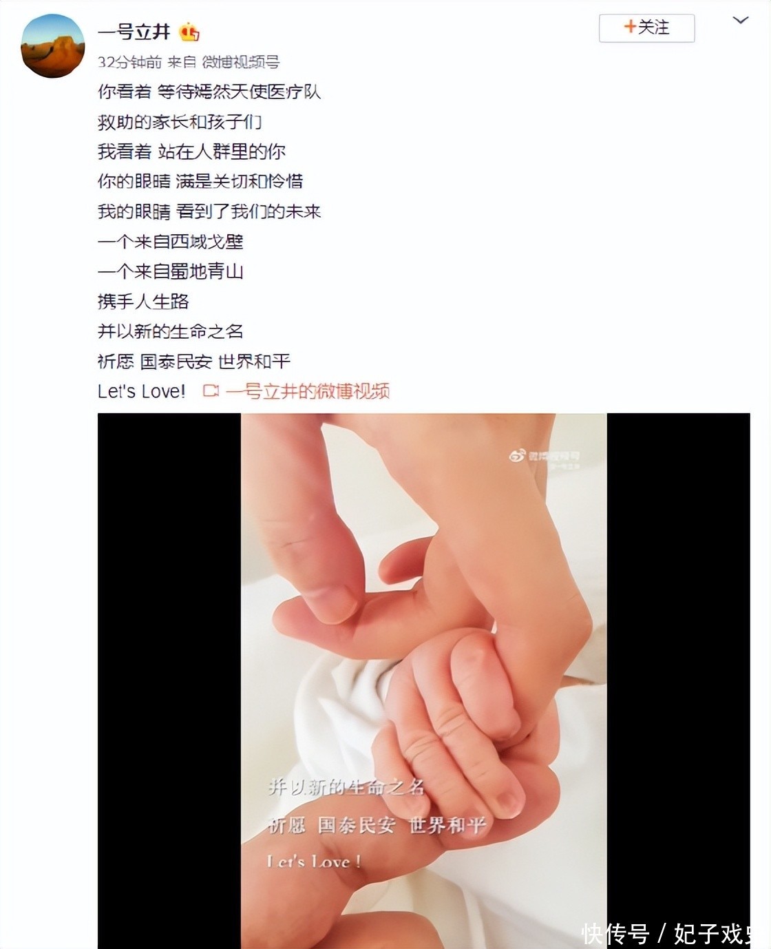 并且还一同晒出两人从相识相恋到结婚生子的视频。