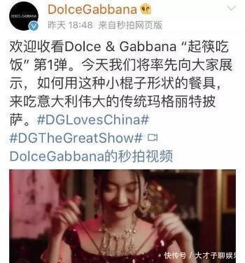 2018年,国外一家名叫杜嘉班纳的品牌推出了宣传片,里面包含了很多内涵中国文化的语句,比如他们把我们经常使用的筷子,叫作“棍状物体”,语气中充满了讽刺和傲慢